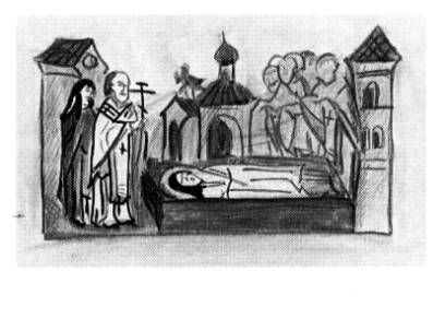 «Погребение Исакия игуменом Печерского монастыря Иоанном и братией».
