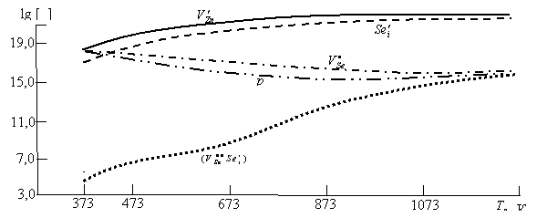1. Залежності рівноважних дефектів від температури відпалу у кристалах ZnSe:Mg при 300 К.