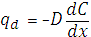 диффузия субстанциясының массасы); х - арақашықтық; dx