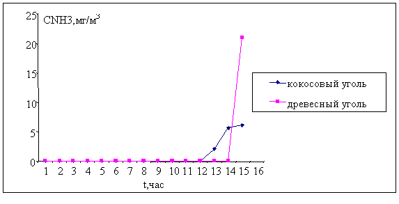 видно что, хемосорбент на угольной основе «древесный» обладает большим временем