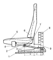 вибрации, передаваемые на сиденье оператора, гасятся упругим элементом 11, а горизонтальные - упругими