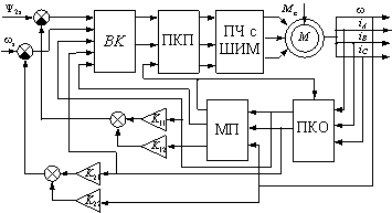 момент, потокосцепление ротора АД; ПКП, ПКО - преобразователи координат