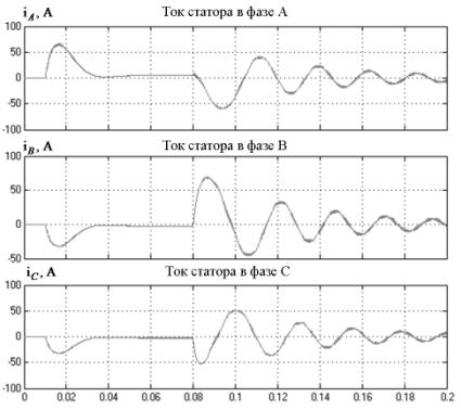 Рисунок 3 – Графики переходных процессов токов статора.