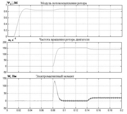 5 изображены графики переходных процессов в исследуемой модели с учетом модели ПЧ с АИН с ШИМ.