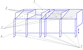 пересувними перегородками 2 на відсіки 3, передня стінка 4 якого, завдяки