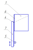 приводу 5, має можливість рухатись вгору-вниз. Між торцями бокових стінок,