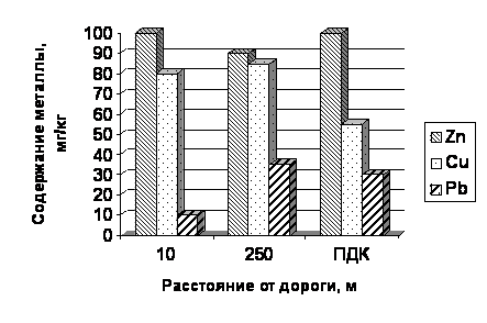 показали, что валовое содержание меди и свинца в придорожных почвах превышает