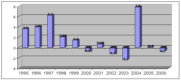 державного бюджету України 1995 – 2006рр. (рис. 1), можна побачити, що бюджет