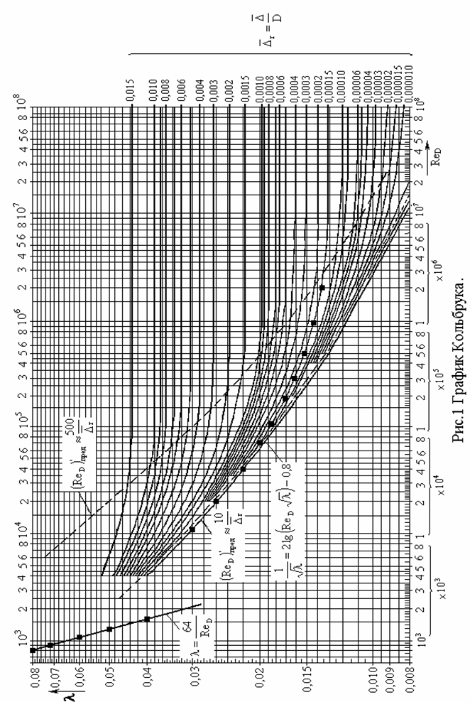 расчета коэффициента Дарси в соответствии с режимом движения жидкости, определяем: