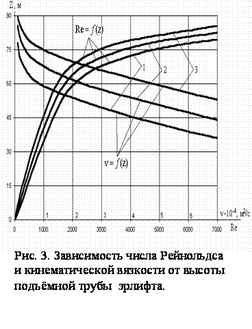 вязкости смеси вдоль подъемной трубы эрлифта изображены на рис.3. Из анализа