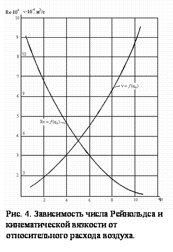 числа Re и кинематической вязкости n от относительного расхода воздуха q0.