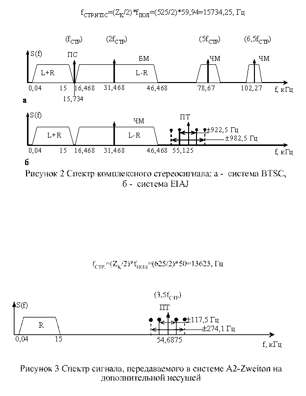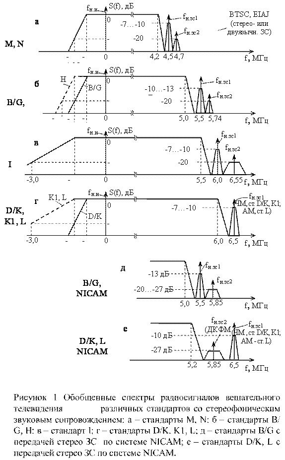передачи стереофонических сигналов звукового сопровождения в ТВ приведены на