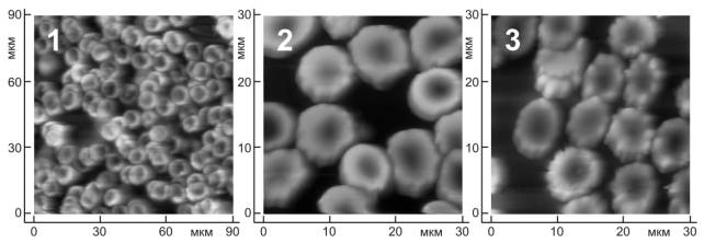 Рисунок 1. AFM фотографии эритроцитов у лиц