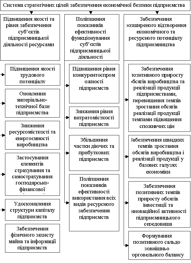 впливів на економічну безпеку підприємства і досягнення наступних основних