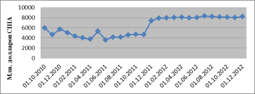 Рис. 1. Динамика объёма золотовалютных резервов Республики