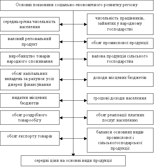 розвитку регіонів будується система критеріїв (характеристик розвитку) і показників, які вимірюють ці