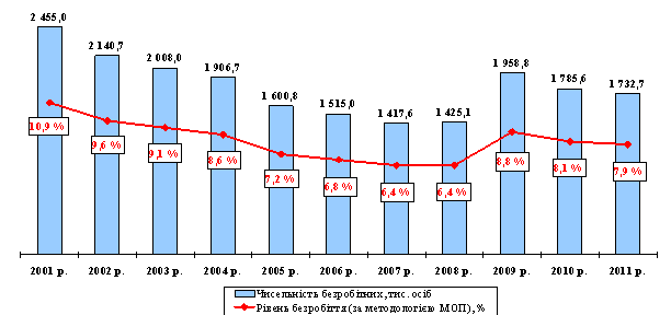 чисельність безробітних складала 1732,7 тис. осіб (рис. 1, табл. 1 [1]). Найвищий рівень