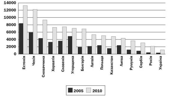 та Східної Європи: від Росії - у 1,8 разу, Польщі - у 4 рази, Чехії - у 10,5