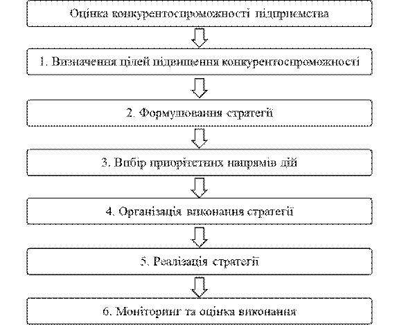 На рисунку 1 узагальнено представлено основні дії щодо розробки та реалізації програми підвищення конкурентоспроможності підприємства.