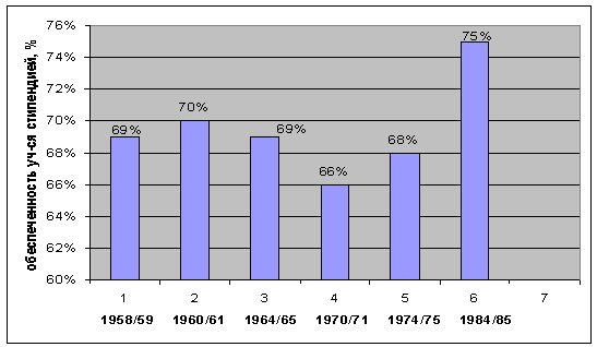 получающих стипендию, произошло после 1970/71 уч. г. (рис. 1). В организации
