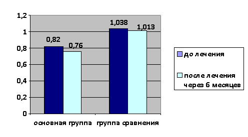 Улучшение показателей комплекса интима-медиа отмечено в обеих группах, причем эффективность в группе пациентов, получивших курс РДТ