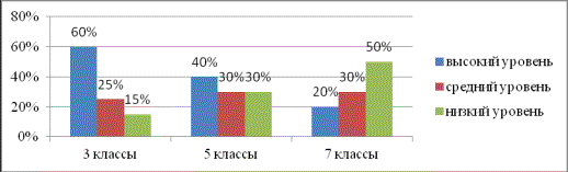 данной возрастной группе преобладает средний и низкий уровень учебной