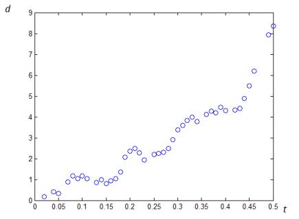 Рис.2. Процесс диффузии (зависимость толщины слоя от времени).