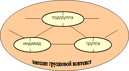 Наиболее полно идея неформальных подгрупп в группе реализована в микрогрупповой теории [2; 3]. В ней анализируются все уровни групповой активности (индивид, подгруппа, группа) с присущими им разнообразными связями (рис. 1).