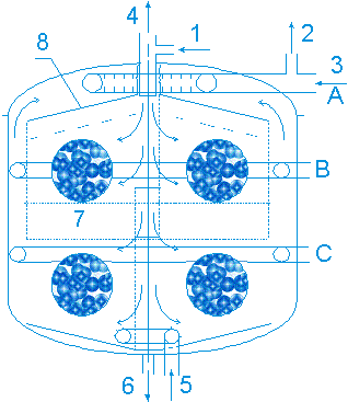 цилиндрическую часть и через узлы В, С отводится из фильтра. Обечайки