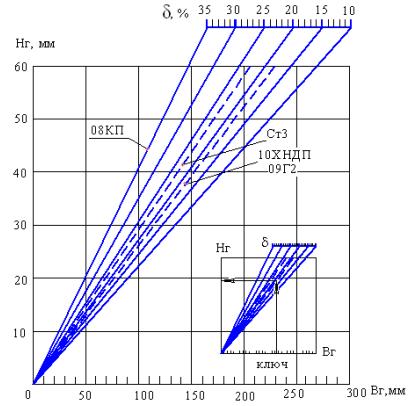 Номограмма позволяет определять допустимую высоту формуемых гофров