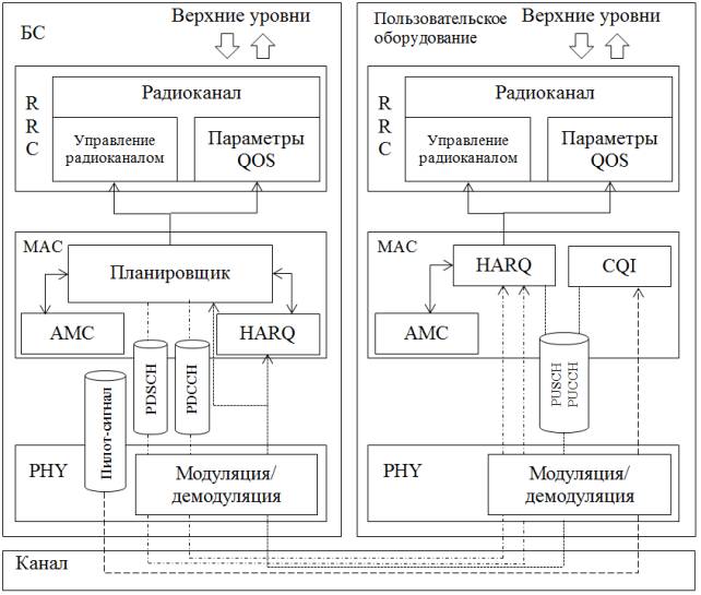 3) Физические каналы. Для передачи данных БС использует физический нисходящий совместно используемый канал (PDSCH) . Передача по PDSCH осуществляется