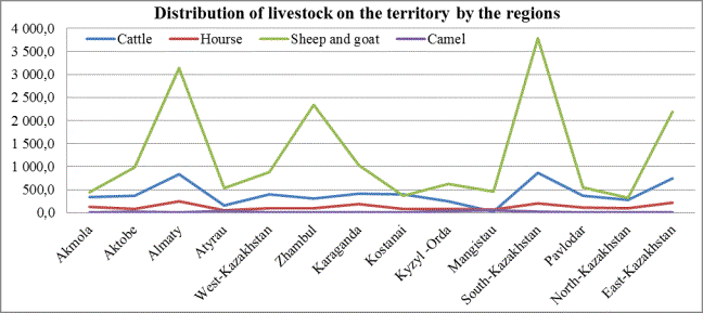 1 – Distribution of livestock on the territory by the regions of Kazakhstan