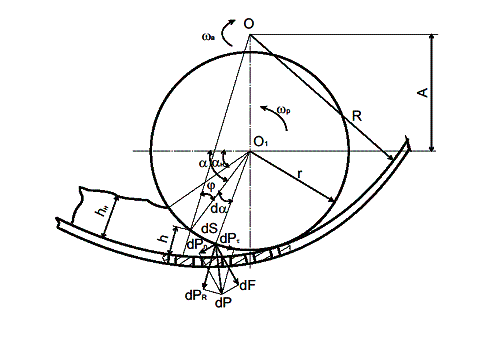 1 – Процесс взаимодействия прессующего ролика и матрицы в роликовом грануляторе