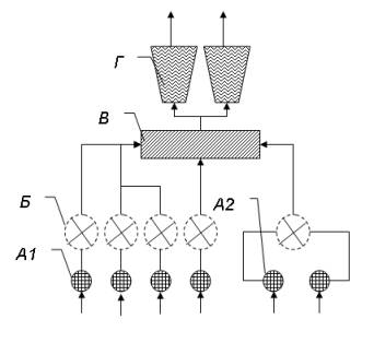 повітря зерносховища; Б – повітродувка; В – єдиний аспірацій ний колектор; Г –