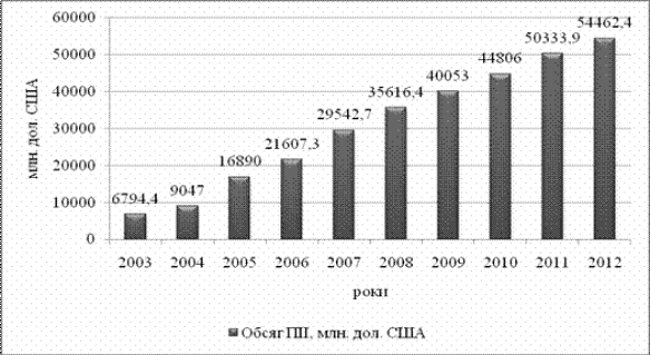 року становив 54462,4 млн. дол. США, що на 8,2% більше обсягів інвестицій на