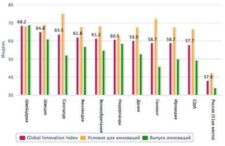 десятку стран-лидеров по уровню инновационного развития, согласно данного