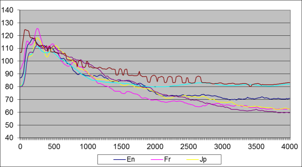 на различных языках различаются. Также, видно, что спектр музыкальных записей