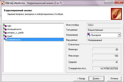 a tool "Correlation analysis" of the "Clear Data".