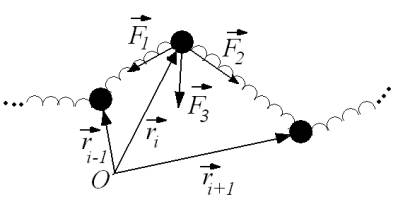 «бусинок», соединенных упругими пружинками с жесткостью k (рис.1). Также, при моделировании учтена жесткость цепи на изгиб (константа k1)