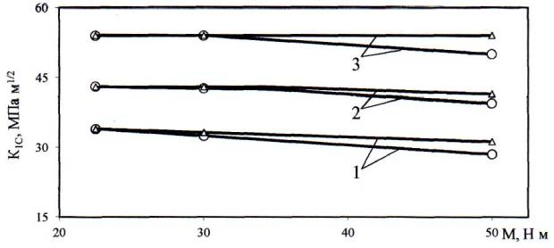 показали рівень в’язкості руйнування, рівний К1С зразків, тренованих