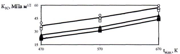 сталі 37ХН3А. Згідно приведеним даним, зниження в’язкості руйнування (при короткочасному навантаженні)