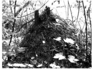 Гнізда Formica rufa прикриті насипним конусом іноді до двох метрів