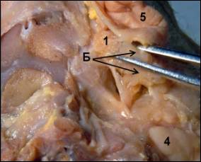 залоза; 2 – жирове тіло щоки; 3 – жувальний м’яз; 4 –