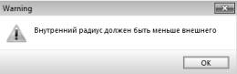 При указании пользователем размера внутреннего радиуса катушки больше внешнего на экран выводится предупреждающее сообщение, после чего значение должно быть изменено на стандартное.