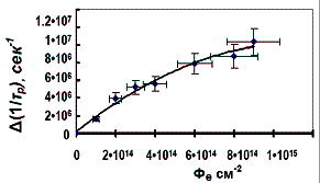 наиболее вероятной причиной наблюдаемой зависимости Δ(1/τp) = F(Ф) является