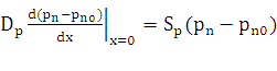 x = 0 изменение концентрации неосновных носителей заряда характеризуется