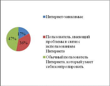 Интернет –аддикция не выражена. С учетом этих данных, образованы эквивалентные по уровню Интернет-аддикции