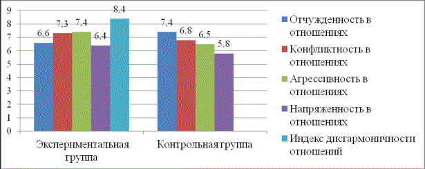 исследование тех же параметров, которое показало, что отчужденность в отношениях снизилась на 0,6%, конфликтность в отношениях