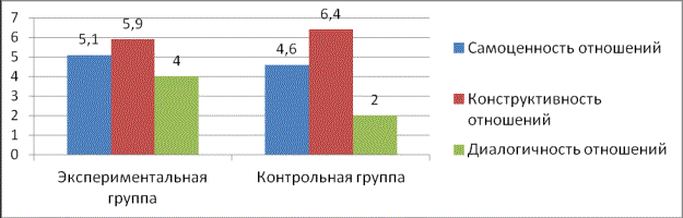 снизился на 3,1%, диалогичность отношений повысилась на 1,6 %, самоценность и конструктивность отношений