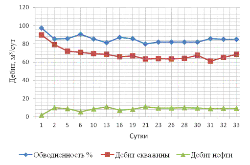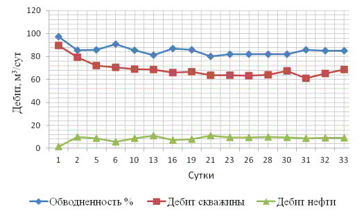 представлены результаты мониторинга дебита и давления в скважине на которой